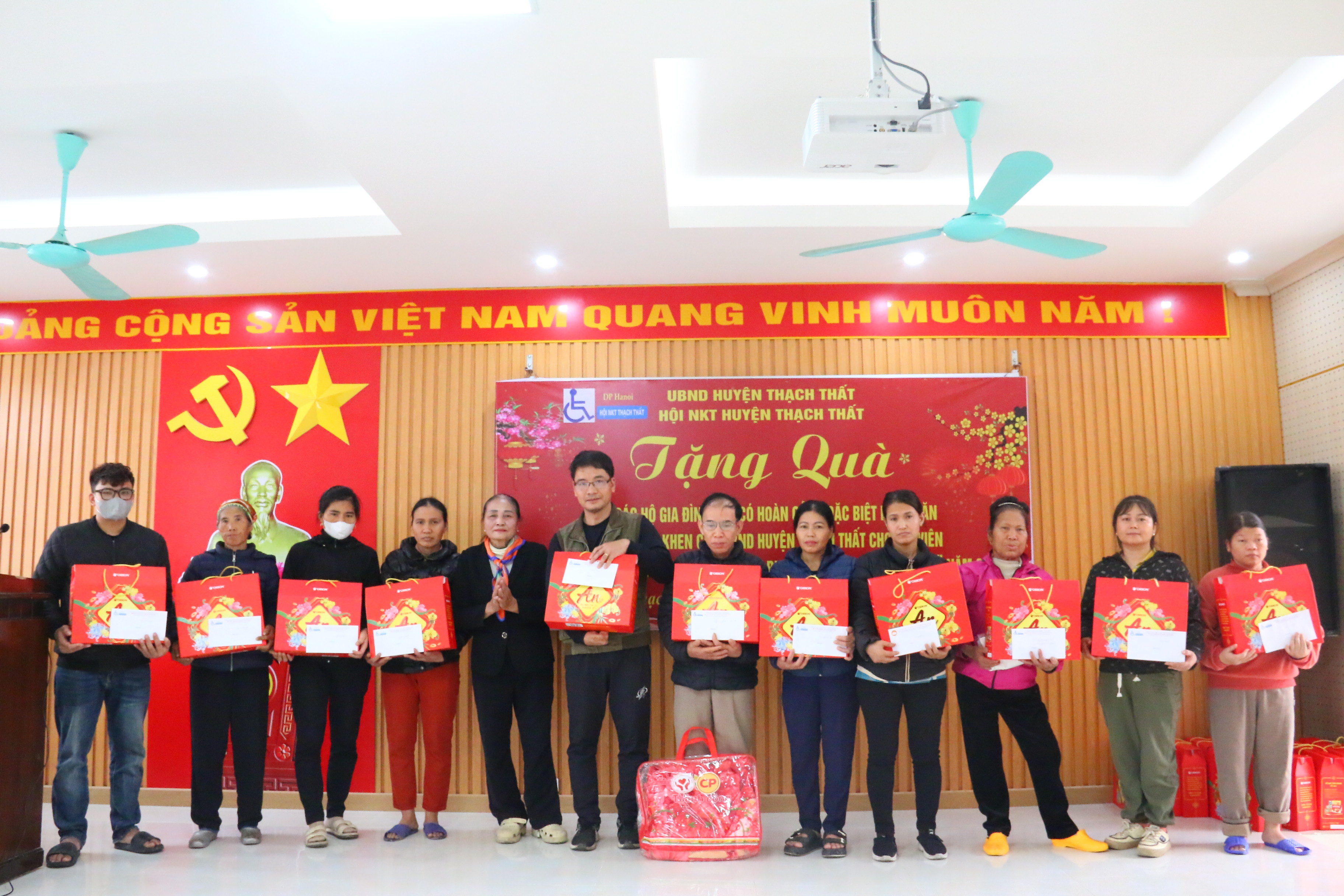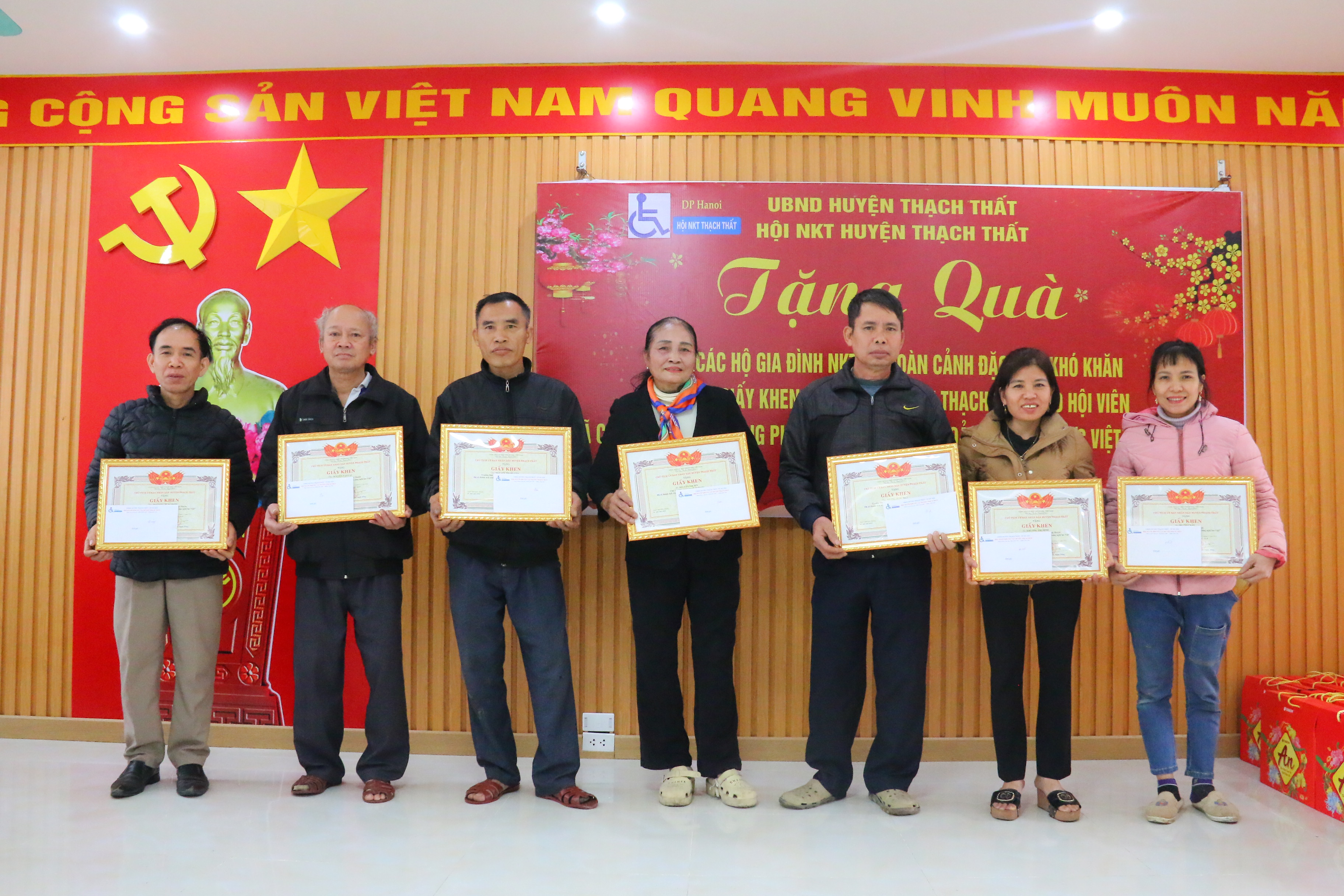 26/01/2025Sáng ngày 25/1, Hội Người khuyết tật huyện tổ chức chương trình Tặng quà Tết cho các hộ gia đình người khuyết tật có hoàn cảnh khó khăn, trao giấy khen của UBND huyện Thạch Thất cho hội viên có thành tích tiêu biểu trong phong trào “Toả sáng nghị lực Việt” năm 2024.