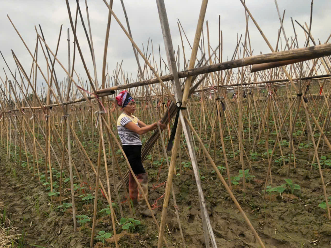 Nông dân Bình Yên làm giàn cho cây dưa chuột