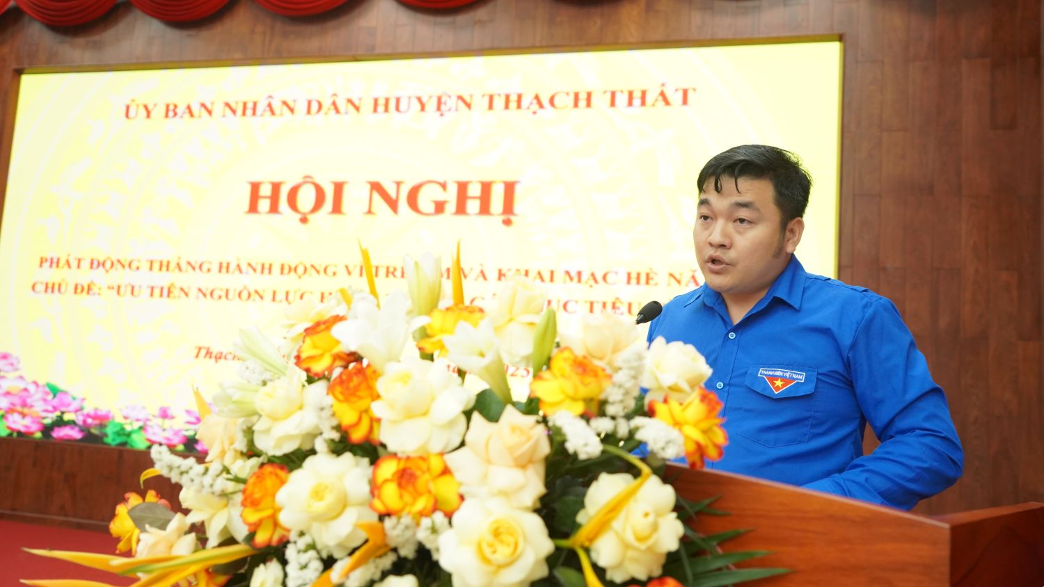 28/05/2025Chiều ngày 27/5, tại hội trường lớn UBND huyện, UBND huyện Thạch Thất tổ chức hội nghị phát động Tháng hành động vì trẻ em và Khai mạc hè năm 2025 với chủ đề “Ưu tiên nguồn lực hoàn thành các mục tiêu vì trẻ em”. Đ/c Đỗ Toàn Thắng – Trưởng Phòng Giáo dục và Đào tạo huyện; đ/c Đặng Văn Võ – HUV – Giám đốc Trung tâm VHTT& TT huyện; đ/c Vương Thị Ngọc Diên – Trưởng Phòng y tế huyện; đ/c Phùng Thị Huyền – Bí thư Huyện đoàn; các đồng chí thành viên Ban chỉ đạo chương trình Quốc gia bảo vệ trẻ em huyện Thạch Thất giai đoạn 2021 – 2025; thành viên Ban chỉ đạo hoạt động hè Huyện năm 2025; đại diện lãnh đạo MTTQ, tổ chức chính trị xã hội huyện; Bí thư đoàn các trường THPT, Trung tâm GDNN- GDTX; lãnh đạo UBND, Bí thư đoàn thanh niên các xã, thị trấn; Hiệu trưởng các trường mầm non công lập trên địa bàn huyện dự hội nghị.