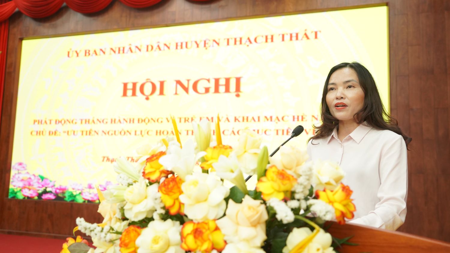 Theo kế hoạch thông qua tại hội nghị, với chủ đề: "Ưu tiên nguồn lực hoàn thành các mục tiêu vì trẻ em", Tháng hành động vì trẻ em năm 2025 trên địa bàn huyện Thạch Thất được triển khai từ ngày 01/6- 30/6/2025 nhằm mục đích tăng cường sự lãnh đạo, chỉ đạo và nâng cao trách nhiệm của các cấp, các ngành, nhất là trách nhiệm của người đứng đầu trong chỉ đạo, triển khai thực hiện chủ trương, đường lối của Đảng, chính sách, pháp luật của Nhà nước về công tác bảo vệ chăm sóc trẻ em. Thực hiện hiệu quả các chính sách, chương trình, kế hoạch liên quan đến trẻ em; tuyên truyền nâng cao nhận thức, cam kết trách nhiệm và hành động của các cơ quan, tổ chức và chuyển đổi hành vi của cộng đồng, gia đình và chính bản thân trẻ em theo hướng tích cực trong việc thực hiện Luật trẻ em nói chung và quyền trẻ em nói riêng, đặc biệt trong việc giải quyết các vấn đề liên quan đến trẻ em và phòng ngừa, giảm thiểu các nguy cơ trẻ em bị xâm hại, trẻ em bị tan nạn, thương tích. Quan tâm đầu tư bố trí nguồn lực và tăng cường vận động xã hội hóa tập trung cho các hoạt động bảo vệ, chăm sóc trẻ em, xây dựng môi trường sống an toàn, lành mạnh, thân thiện và giúp trẻ em phát triển một cách toàn diện.