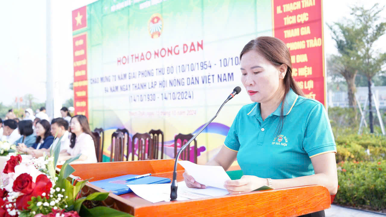 Đồng chí Vương Thị Thảo-Huyện ủy viên- Chủ tịch Hội Nông dân huyện Thạch Thất phát biểu Khai mạc
