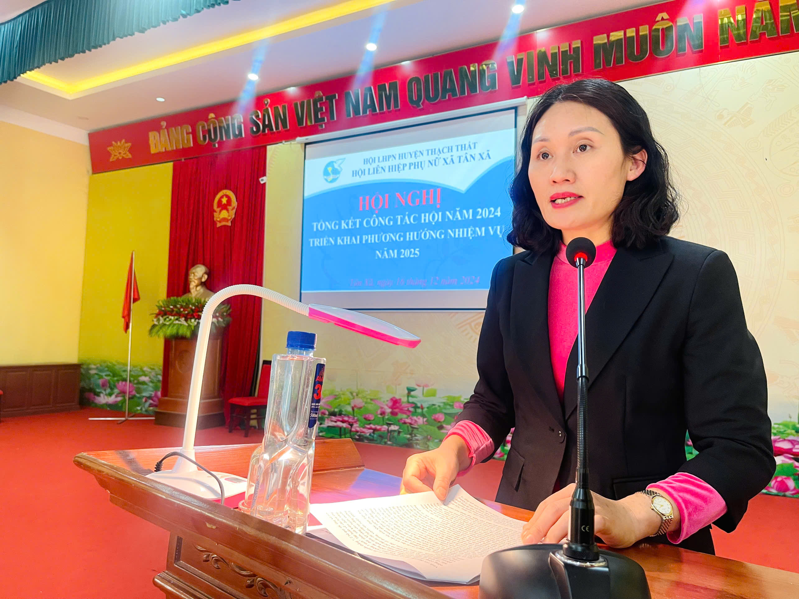 Phát biểu chỉ đạo tại hội nghị, đồng chí Trần Sơn Hải – Phó Bí thư thường trực Đảng uỷ xã ghi nhận, đánh giá cao những kết quả các cấp Hội phụ nữ trên địa bàn xã đạt được trong năm 2024. Để hoàn thành các mục tiêu nhiệm vụ của Hội, đồng chí Phó Bí thư thường trực Đảng uỷ xã yêu cầu Hội tập trung thực hiện 4 nhiệm vụ trọng tâm: đẩy mạnh công tác tuyên truyền trong cán bộ, hội viên thực hiện tốt các chủ trương, chính sách của Đảng, pháp luật của Nhà nước; nâng cao chất lượng công tác Hội và phong trào phụ nữ từ các chi, tổ Hội; đẩy mạnh thực hiện các phong trào, các cuộc vận động của Hội gắn với nhiệm vụ chính trị của địa phương; tăng cường kiểm tra, giám sát, phối hợp tổ chức thực hiện tốt Quy định 217, 218 để xây dựng Đảng, xây dựng chính quyền trong sạch, vững mạnh.
