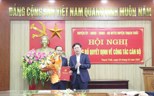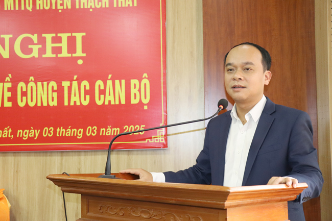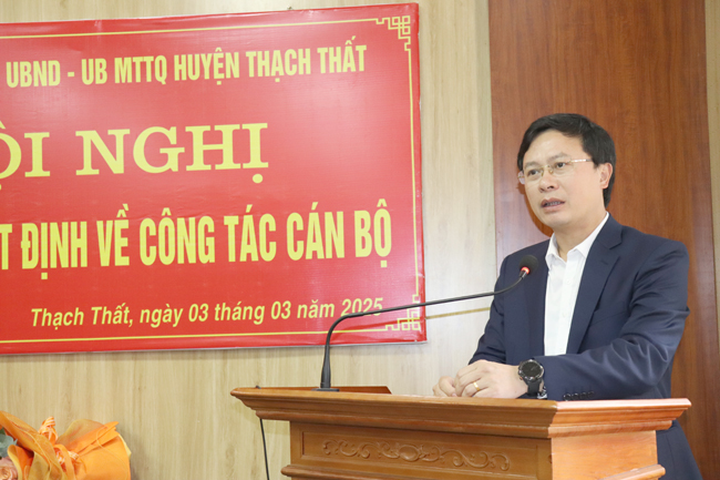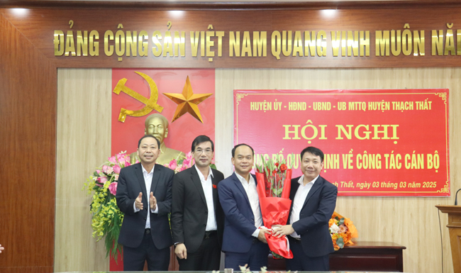 Tại Hội nghị, lãnh đạo Ban Tổ chức Huyện ủy đã thông qua Quyết định số 4181 ngày 28/2/2025 của Ban Thường vụ Huyện ủy Thạch Thất về việc điều động, phân công đồng chí Đỗ Ngọc Quang, thôi tham gia Ban chấp hành, Ban Thường vụ, chức vụ Phó Bí thư Đảng ủy xã Lam Sơn, nhiệm kỳ 2020- 2025, đến nhận công tác tại Phòng Tài chính- Kế hoạch huyện, để bổ nhiệm giữ chức vụ Phó trưởng phòng Tài chính- Kế hoạch huyện; đồng thời thông qua Quyết định số 883 ngày 28/2/2025 của UBND huyện Thạch Thất về việc tiếp nhận và bổ nhiệm đồng chí Đỗ Ngọc Quang- Phó Bí thư Đảng ủy xã Lam Sơn, Chủ tịch UBND xã Lam Sơn nhiệm kỳ 2021- 2026 đến nhận công tác và giữ chức vụ Phó trưởng phòng Tài chính- Kế hoạch huyện; thời gian giữ chức vụ là 5 năm, kể từ ngày 1/3/2025.