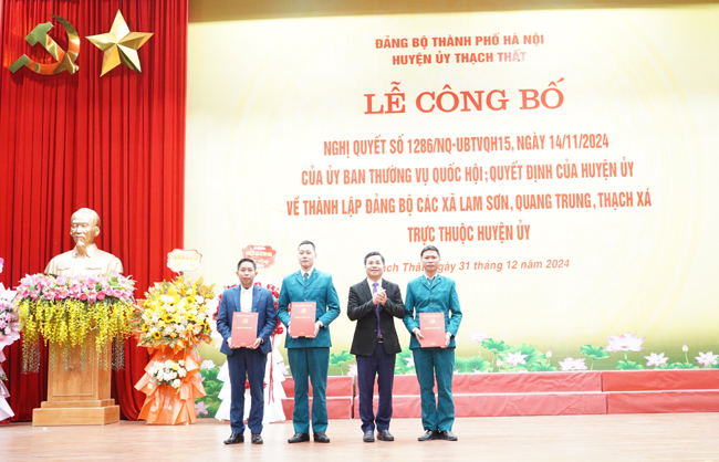 Thạch Thất: Công bố quyết định thành lập Đảng bộ các xã Lam Sơn, Quang Trung, Thạch Xá