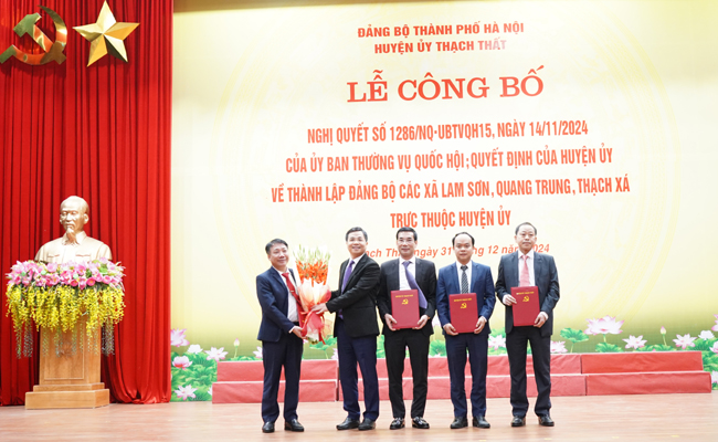 01/01/2025Sáng 31/12, Ban Thường vụ Huyện ủy Thạch Thất tổ chức Lễ công bố Quyết định thành lập Đảng bộ các xã: Lam Sơn, Quang Trung, Thạch Xá.