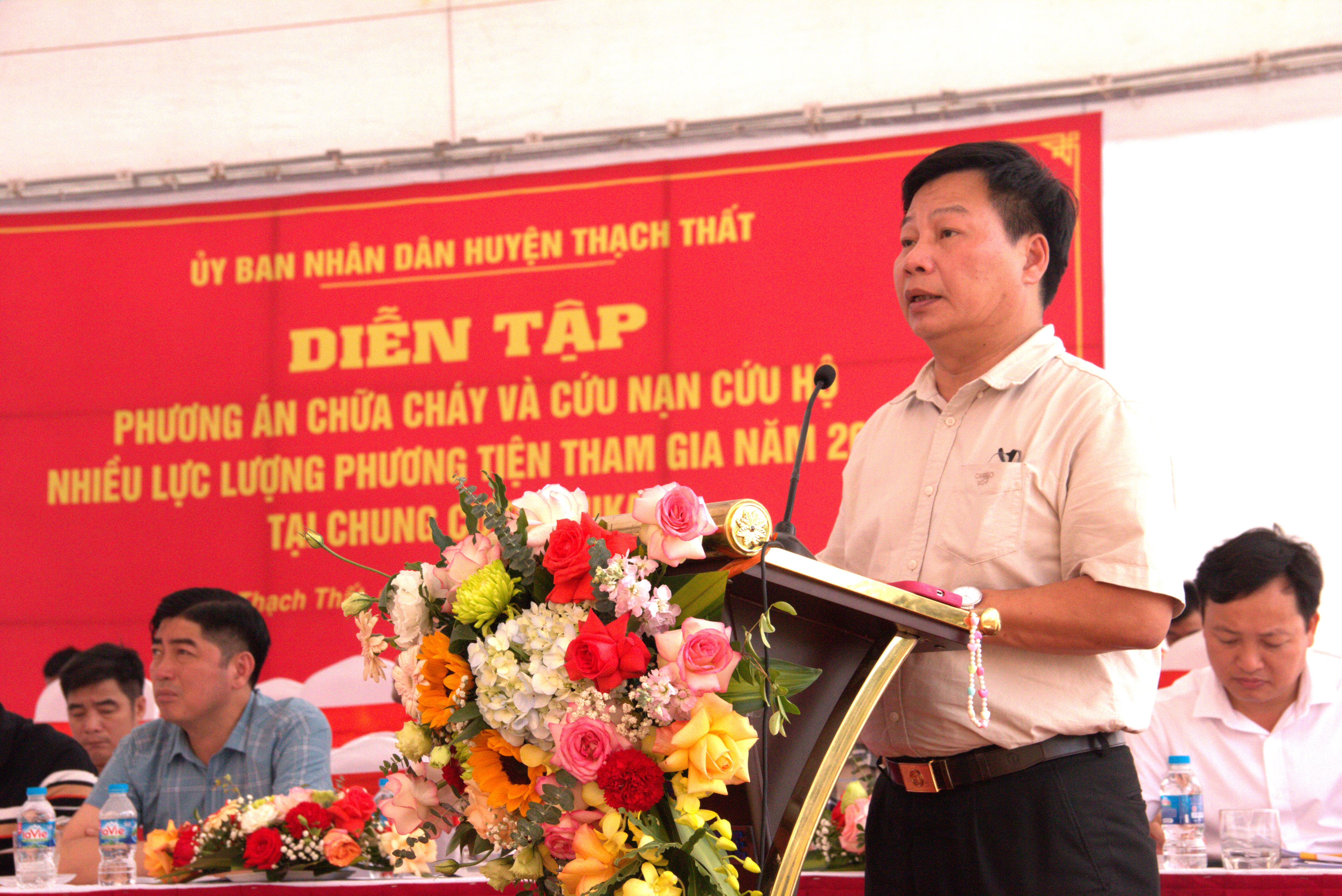 Thạch Thất: Diễn tập phương án PCCC&CNCH cấp huyện năm 2024 thành công tốt đẹp