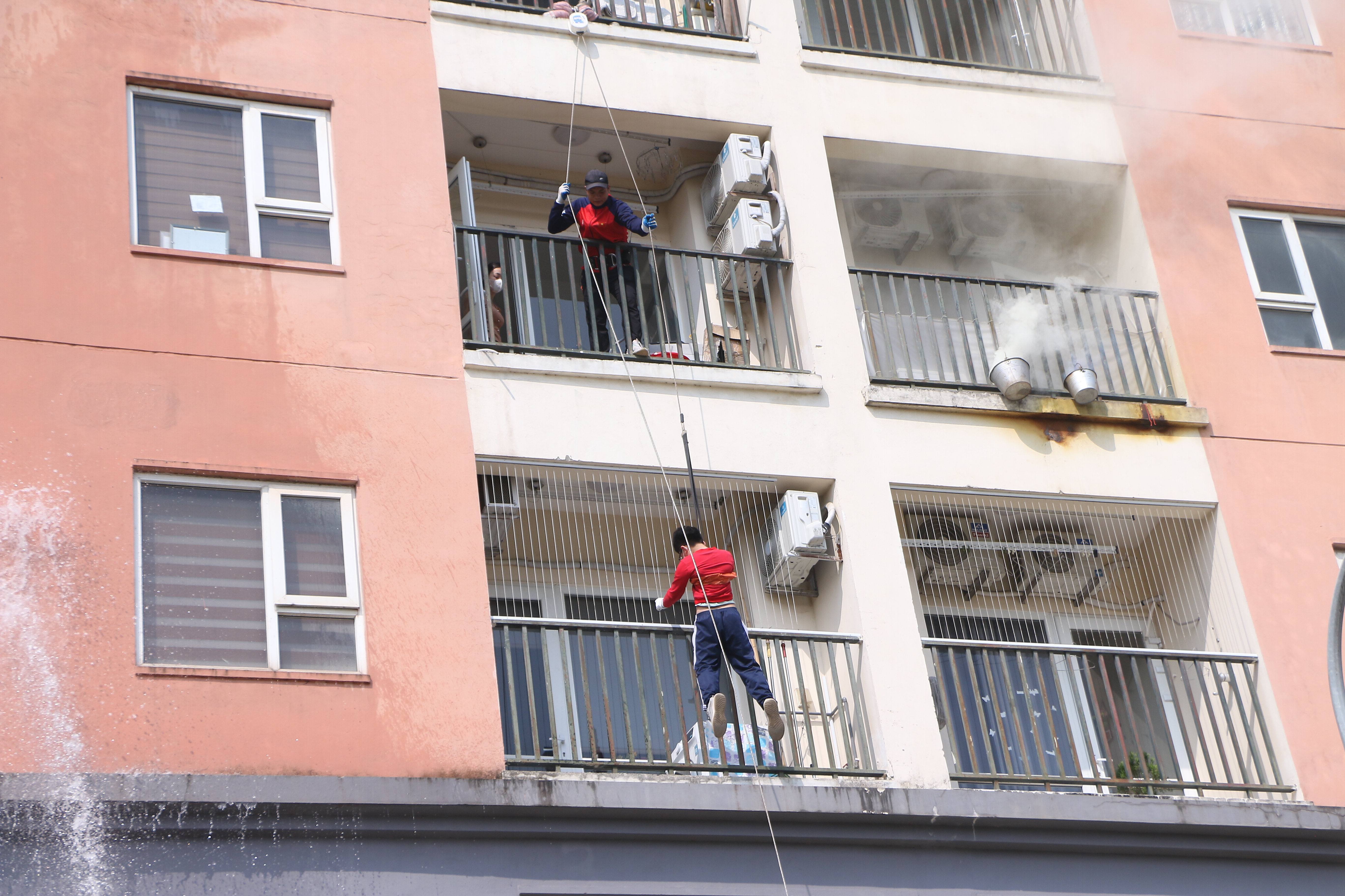 Khi không thể thoát nạn bằng cầu thang bộ của toà nhà nhiều người dân đã sử dụng dây hạ chậm tự trang bị để tiếp đất an toàn
