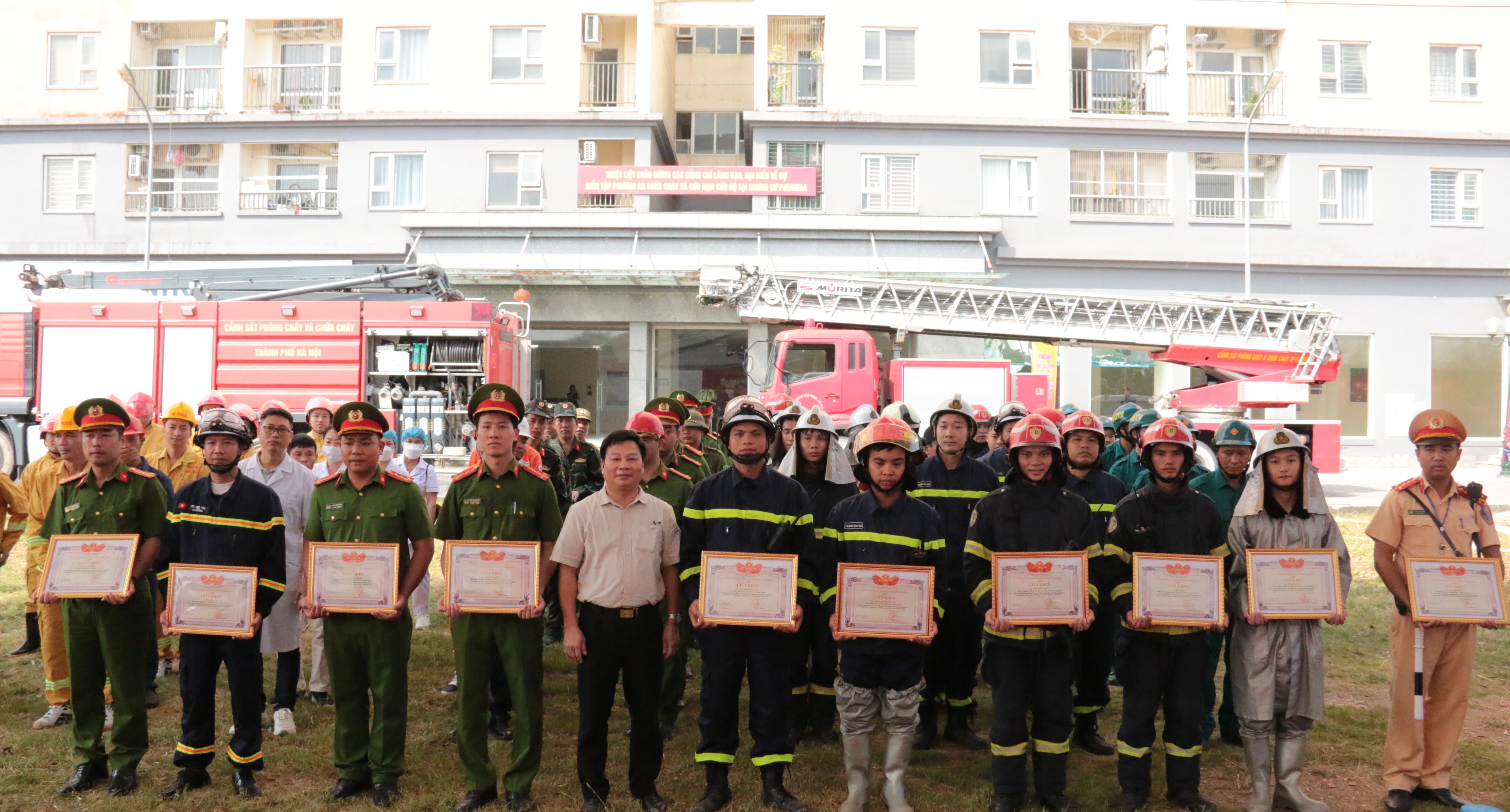 UBND huyện đã khen thưởng các tập thể, cá nhân có thành tích xuất sắc trong diễn tập phương án PCCC&CNCH cấp huyện năm 2024