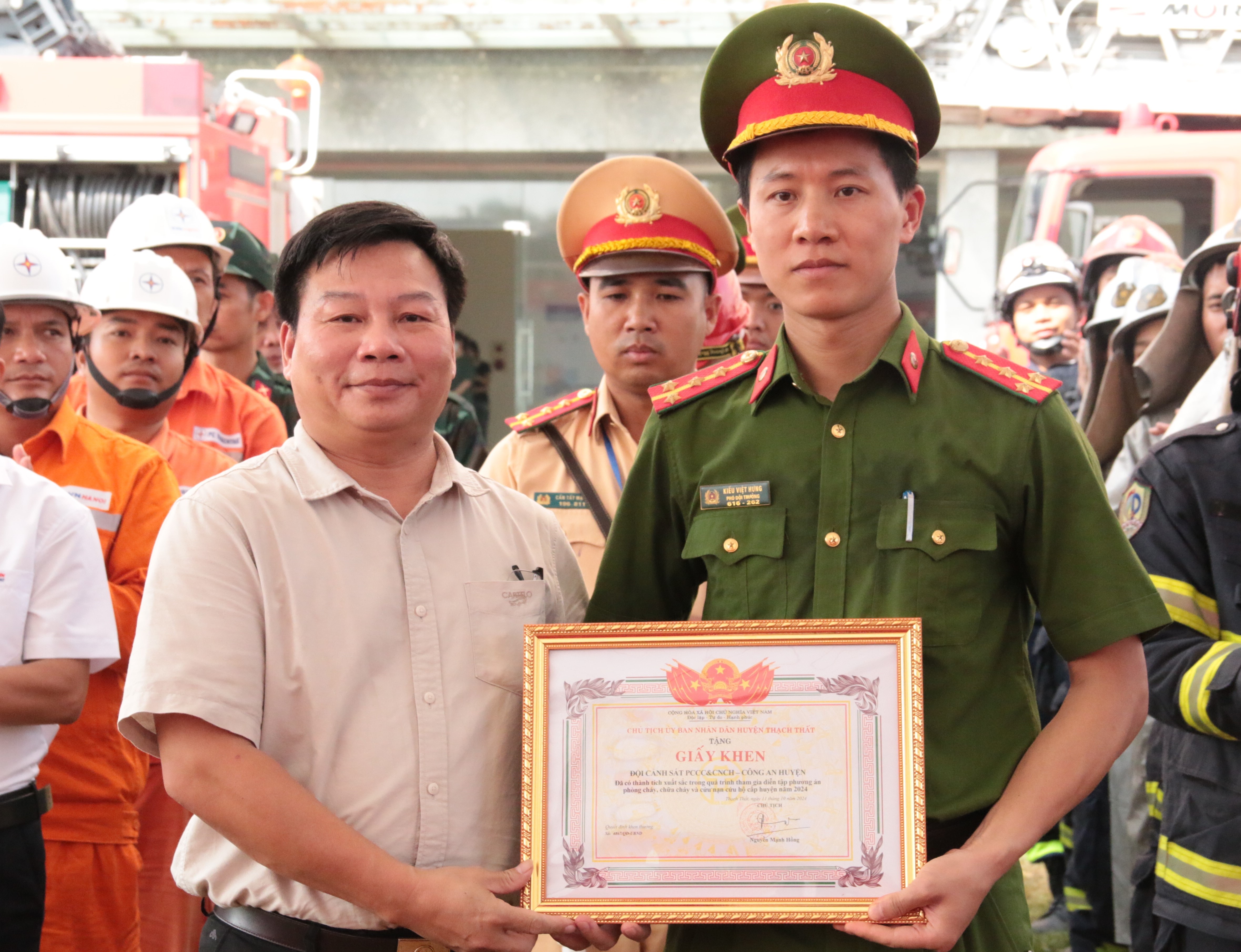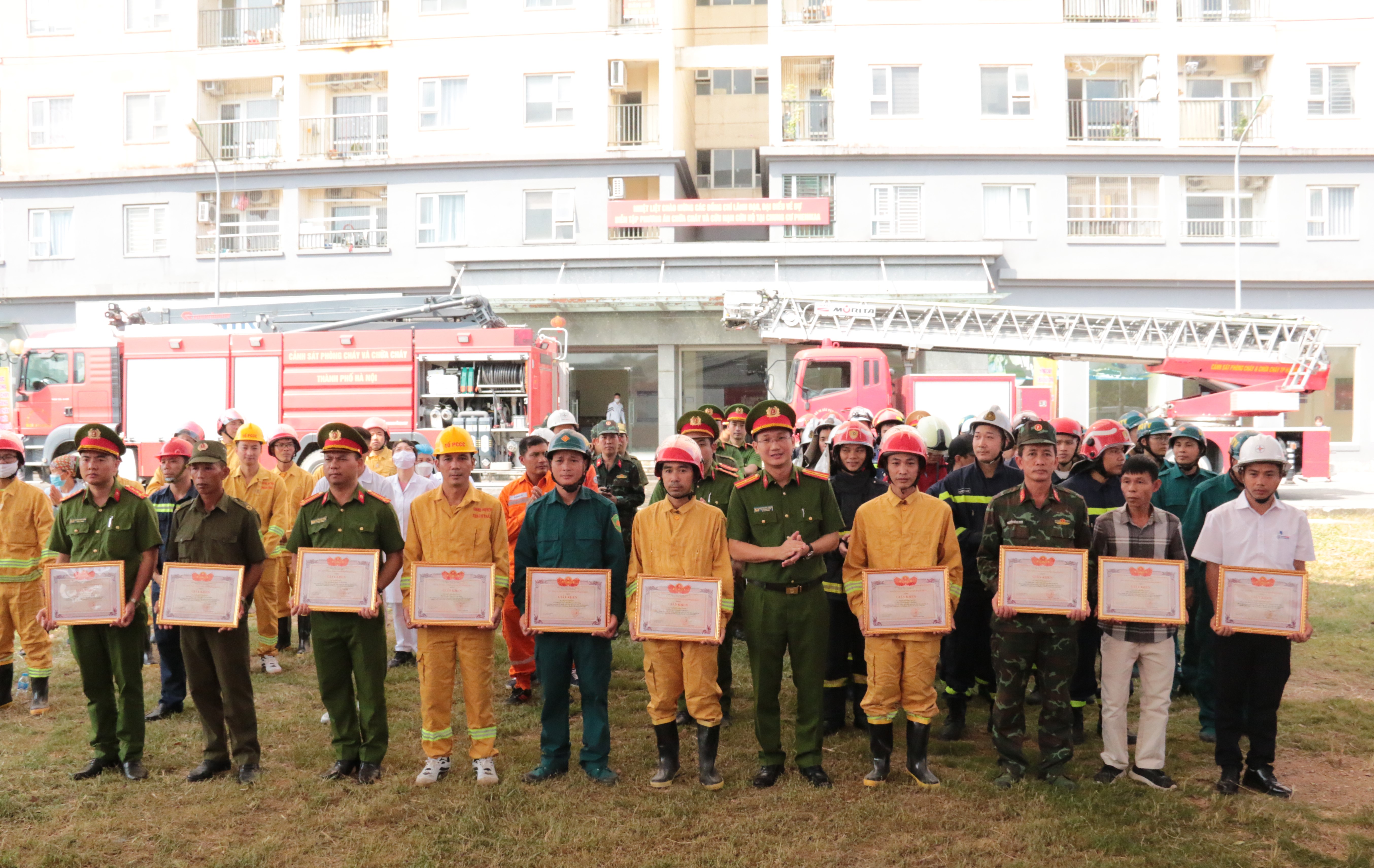 Kết thúc diễn tập, UBND huyện khen thưởng cho 1 tập thể, 22 cá nhân có thành tích xuất sắc trong diễn tập phương án PCCC&CNCH cấp huyện năm 2024./.