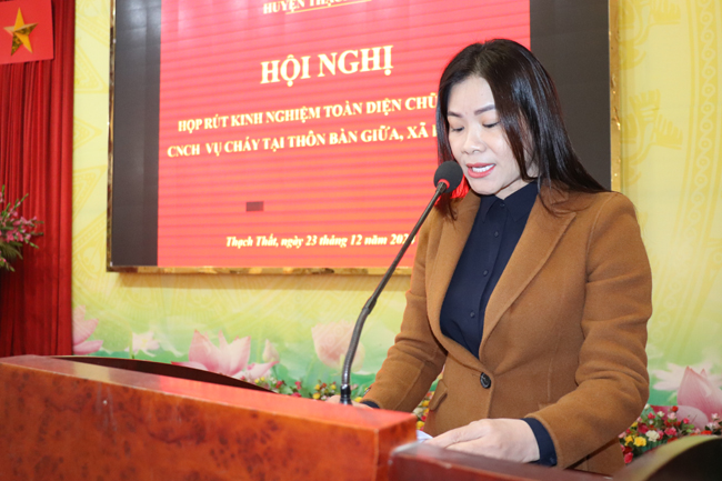 Trên cơ sở báo cáo của CAH, Hội nghị đã tập trung làm rõ những ưu điểm, tồn tại, hạn chế, nguyên nhân trong vụ cháy; nêu rõ trách nhiệm của từng đơn vị trong vai trò quản lý về công tác PCCC; tiếp tục tăng cường công tác hướng dẫn, kiểm tra việc thực hiện các điều kiện về an toàn PCCC đối với khu dân cư, hộ gia đình và nhất là đối với hộ gia đình kết hợp kinh doanh;…