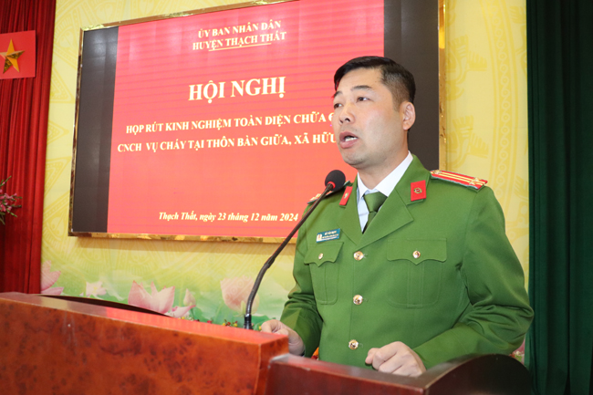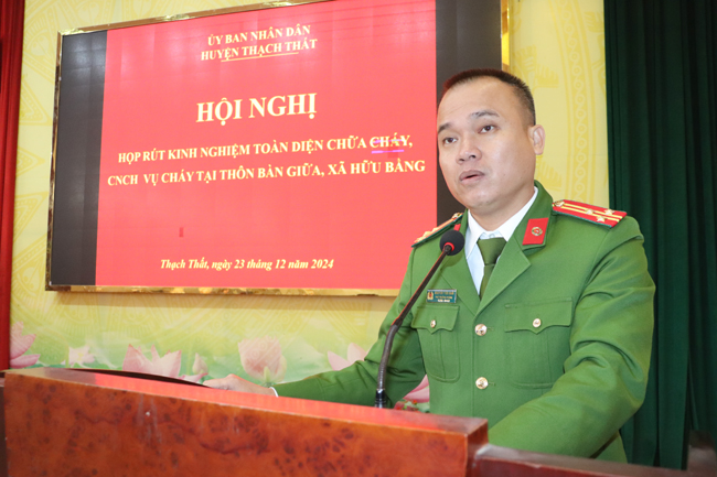Tại hội nghị, lãnh đạo xã Hữu Bằng đã báo cáo công tác quản lý nhà nước về PCCC trên địa bàn xã thời gian qua; đại diện lãnh đạo Công an huyện báo cáo toàn diện về những thiệt hại do vụ cháy gây ra; diễn biến của đám cháy, công tác tổ chức trinh sát đám cháy, đưa ra kỹ chiến thuật chữa cháy và CNCH của các lực lượng; công tác quản lý nhà nước về PCCC của các đơn vị có liên quan, cũng như đánh giá, rút kinh nghiệm trong công tác PCCC&CNCH; đồng thời đề xuất, kiến nghị giải pháp để nâng cao chất lượng công tác PCCC và CNCH trong thời gian tới.