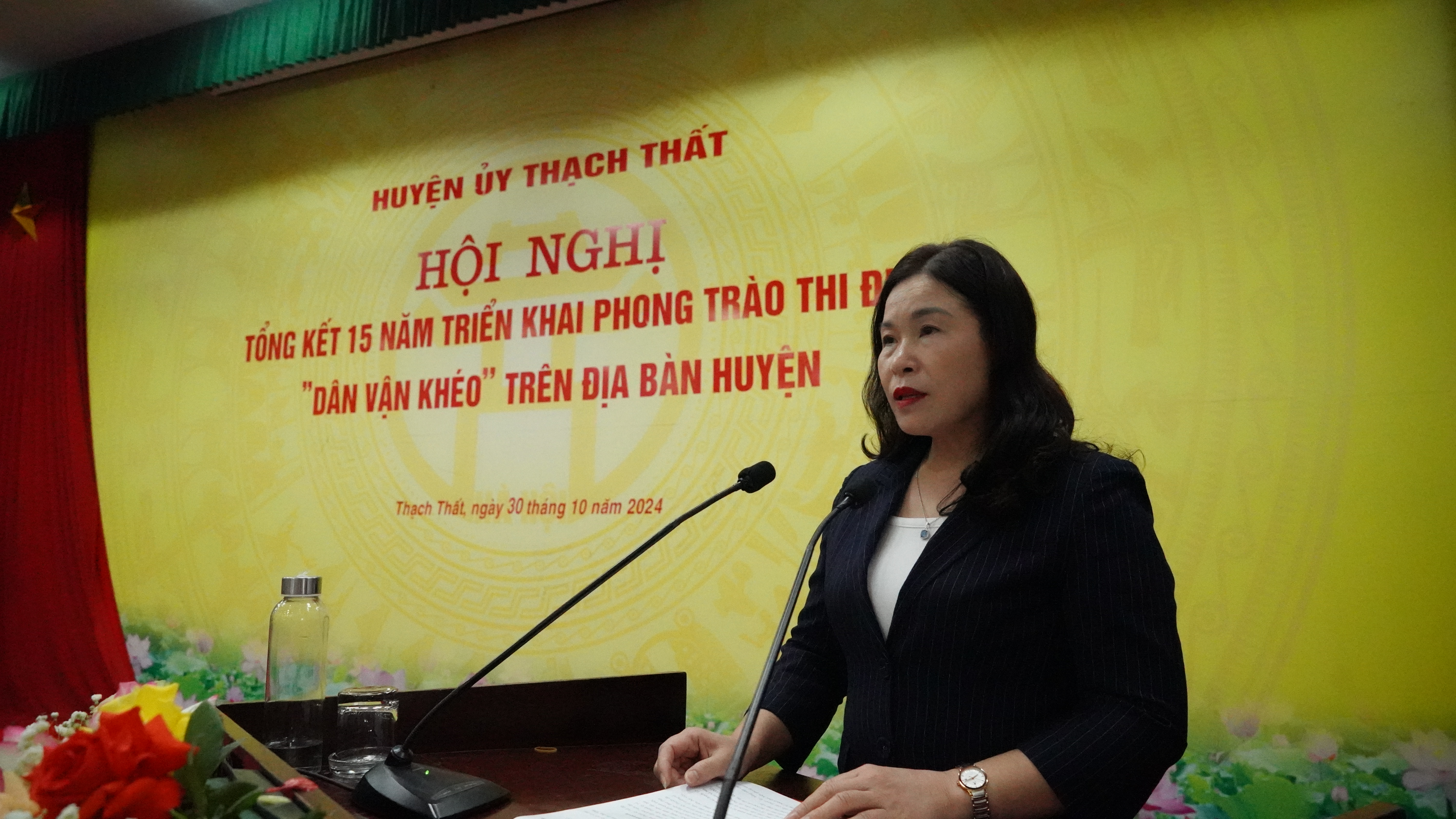 Phát biểu chỉ đạo tại hội nghị, đồng chí Vũ Hà -Thành ủy viên- Phó trưởng Ban Thường trực Ban Dân vận Thành ủy Hà Nội, đồng chí Nguyễn Minh Hồng- Phó Bí thư Thường trực Huyện ủy- Chủ tịch HĐND huyện Thạch Thất đánh giá cao những kết quả đạt được trong 15 năm triển khai thực hiện phong trào thi đua “Dân vận khéo” giai đoạn 2009 - 2024 trên địa bàn huyện. Phong trào đã được triển khai rộng khắp, phát huy được sức mạnh đoàn kết của cả hệ thống chính trị; huy động nguồn lực to lớn từ sức mạnh và sự đồng thuận, ủng hộ của Nhân dân, cùng với cấp ủy, chính quyền các cấp thực hiện thành công các nhiệm vụ trọng tâm của huyện, tạo động lực quan trọng để xây dựng huyện Thạch Thất phát triển nhanh và bền vững.