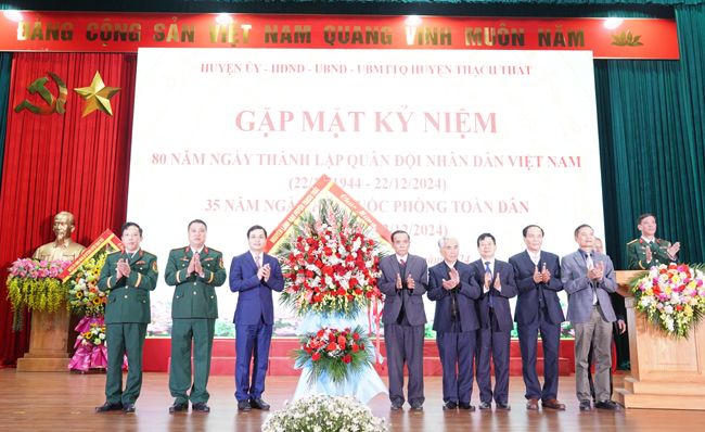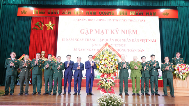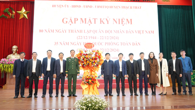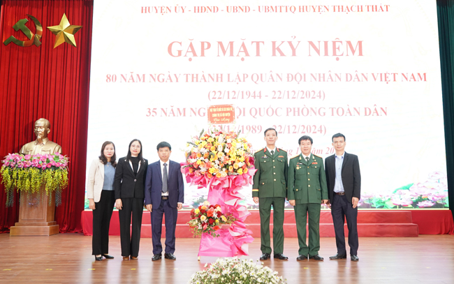 13/12/2024Trong không khí trang nghiêm, tự hào, sáng 12/12, tại Hội trường Trung tâm Văn hóa- Thông tin và Thể thao huyện, huyện Thạch Thất long trọng tổ chức Hội nghị gặp mặt kỷ niệm 80 năm Ngày thành lập Quân đội Nhân dân Việt Nam (22/12/1944- 22/12/2024) và 35 năm ngày Hội Quốc phòng toàn dân năm 2024.