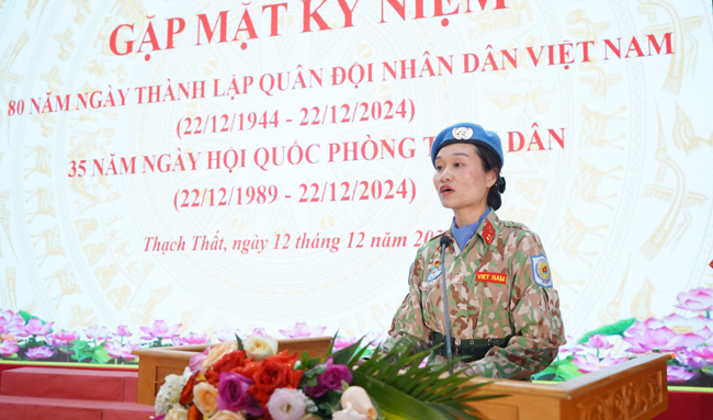 Đại diện thế hệ trẻ lực lượng vũ trang huyện, Trung úy Nguyễn Thị Hồng Nhung bày tỏ niềm tự hào và cảm phục về truyền thống vẻ vang của Quân đội Nhân dân Việt Nam anh hùng. Đồng chí nguyện tiếp tục nỗ lực phấn đấu, rèn luyện, cố gắng vượt qua mọi khó khăn thử thách, hoàn thành xuất sắc nhiệm vụ được giao, viết tiếp trang sử vàng của quân đội Việt Nam anh hùng và dân tộc Việt Nam Anh hùng, làm rạng rỡ hơn hình ảnh Bộ đội Cụ Hồ trong thời kỳ mới.