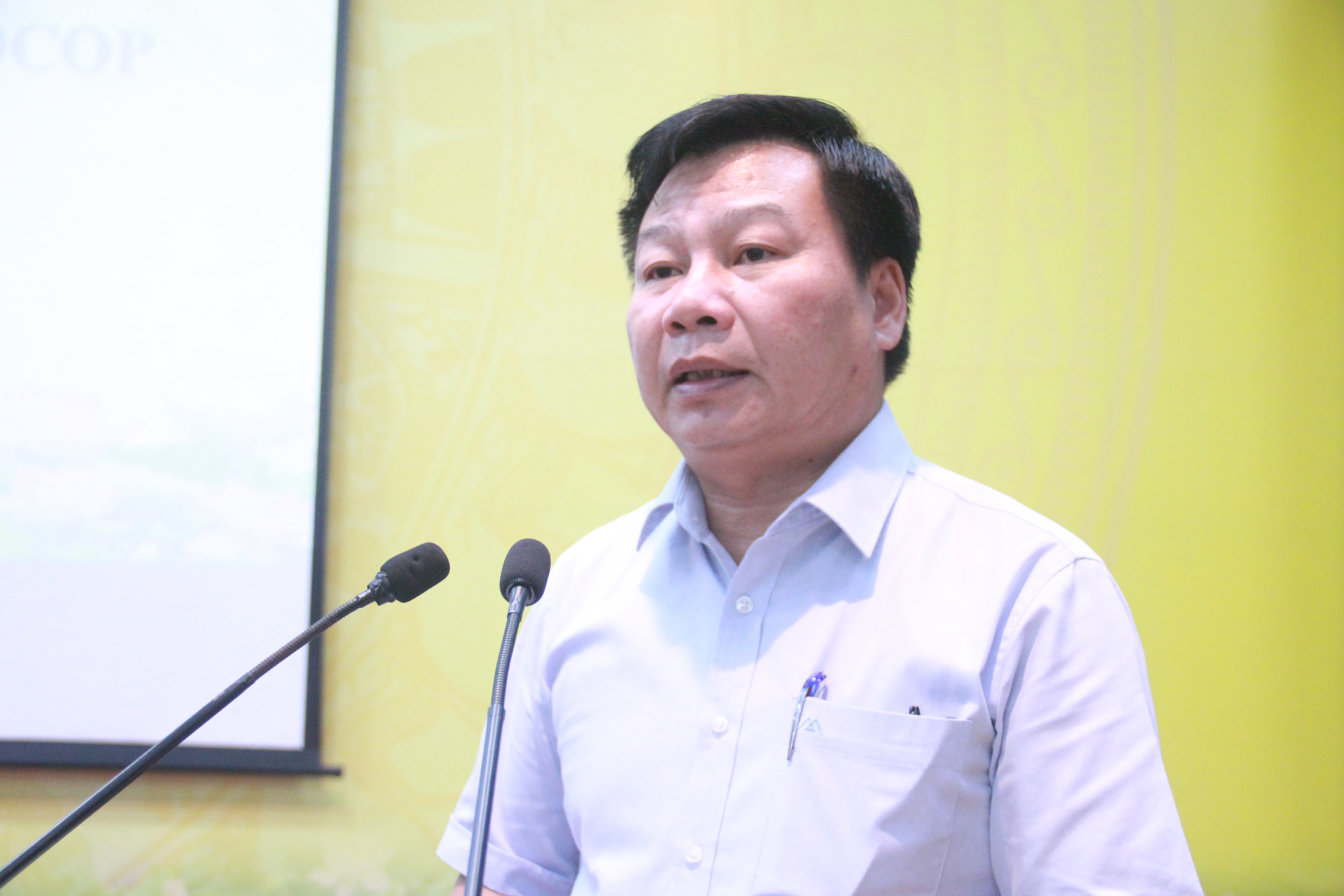 Đồng chí Phùng Khắc Sơn- UVBTV Huyện ủy- Phó Chủ tịch UBND huyện- Chủ tịch Hội đồng đánh giá, phân hạng sản phẩm OCOP huyện Thạch Thất phát biểu tại hội nghị