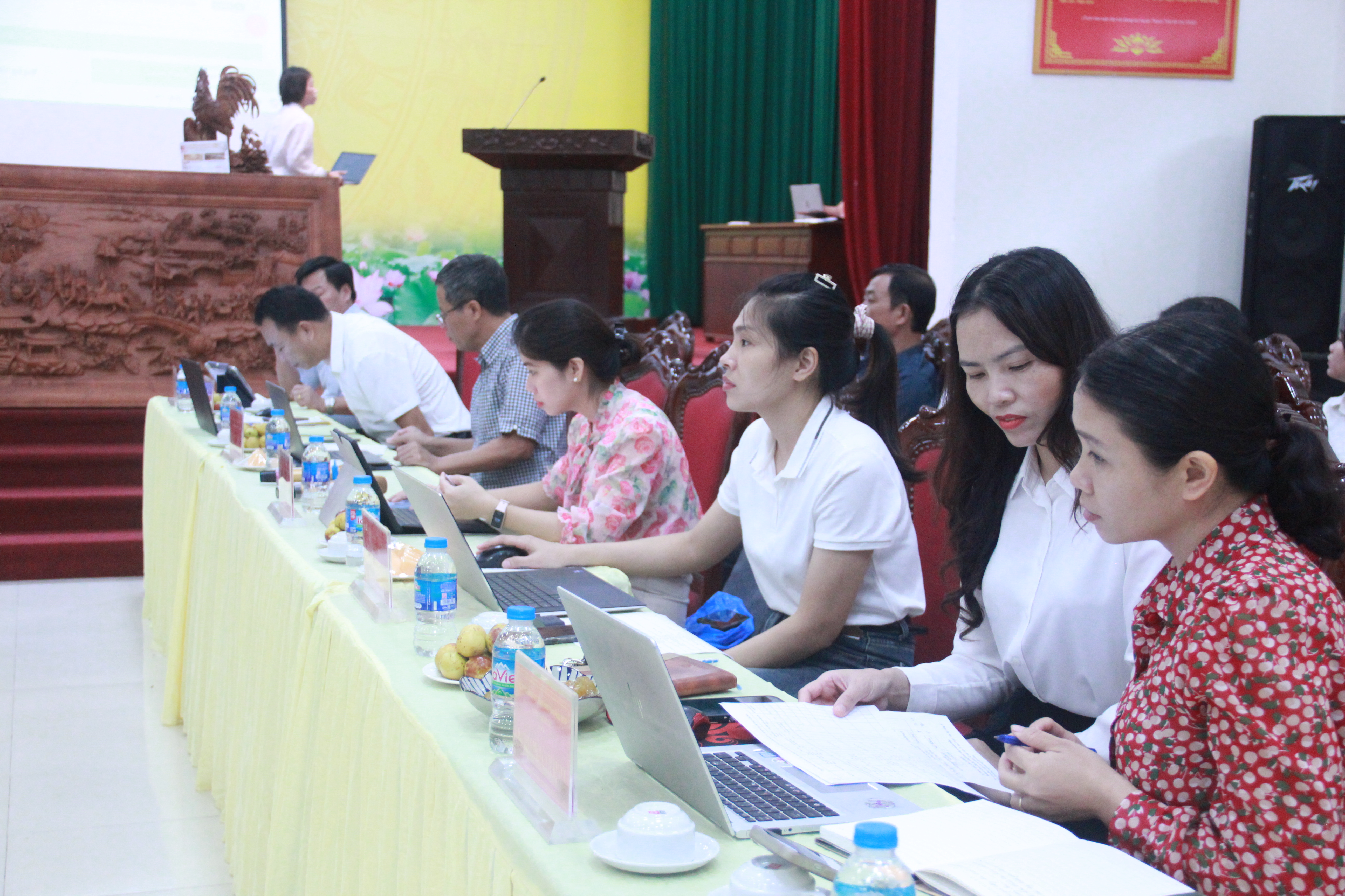 Thành viên tổ tư vấn, hội đồng đánh giá, phân hạng sản phẩm OCOP thành phố Hà Nội; đồng chí Phùng Khắc Sơn- UVBTV Huyện ủy- Phó chủ tịch UBND huyện- Chủ tịch Hội đồng đánh giá, phân hạng sản phẩm OCOP huyện; thành viên Hội đồng, Tổ giúp việc Hội đồng đánh giá, phân hạng sản phẩm OCOP huyện; lãnh đạo đơn vị tư vấn Công ty Cổ phần Sông Đà Kinh Bắc; các chủ thể có sản phẩm tham gia chương trình OCOP tham dự hội nghị.