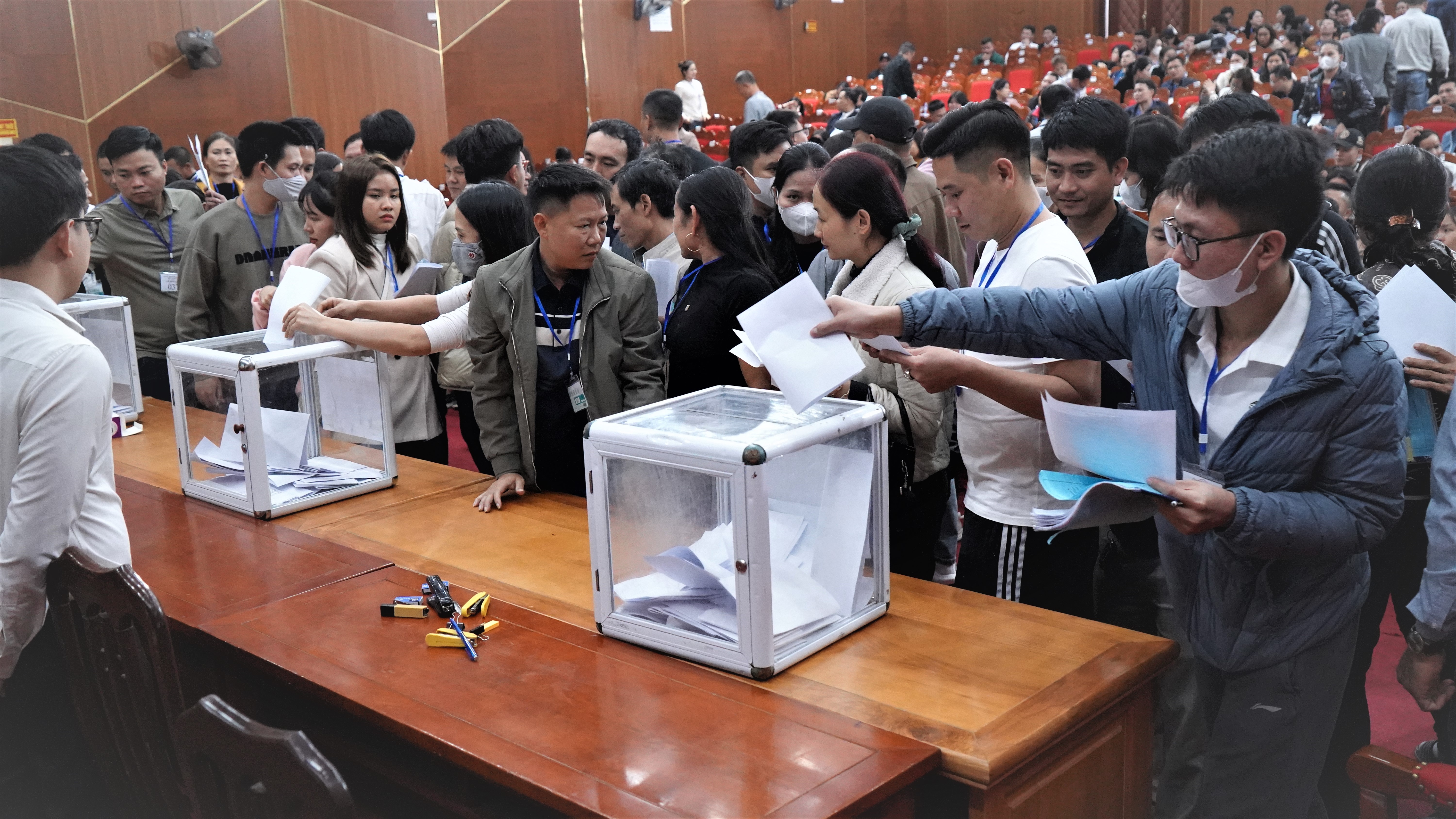 Đấu giá viên Công ty Đấu giá Hợp danh số 5- Quốc gia thực hiện kiểm phiếu