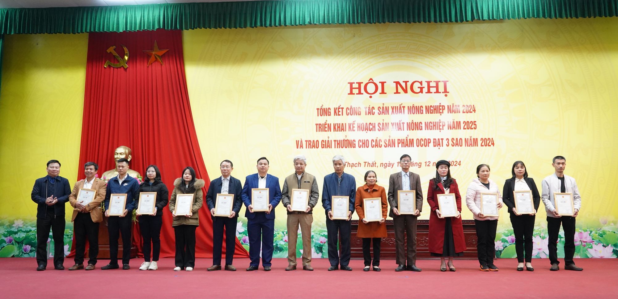 Tại hội nghị, UBND huyện Thạch Thất đã trao thưởng cho 29 sản phẩm OCOP đạt 3 sao; khen thưởng 24 tập thể có thành tích xuất sắc trong sản xuất nông nghiệp năm 2024./.