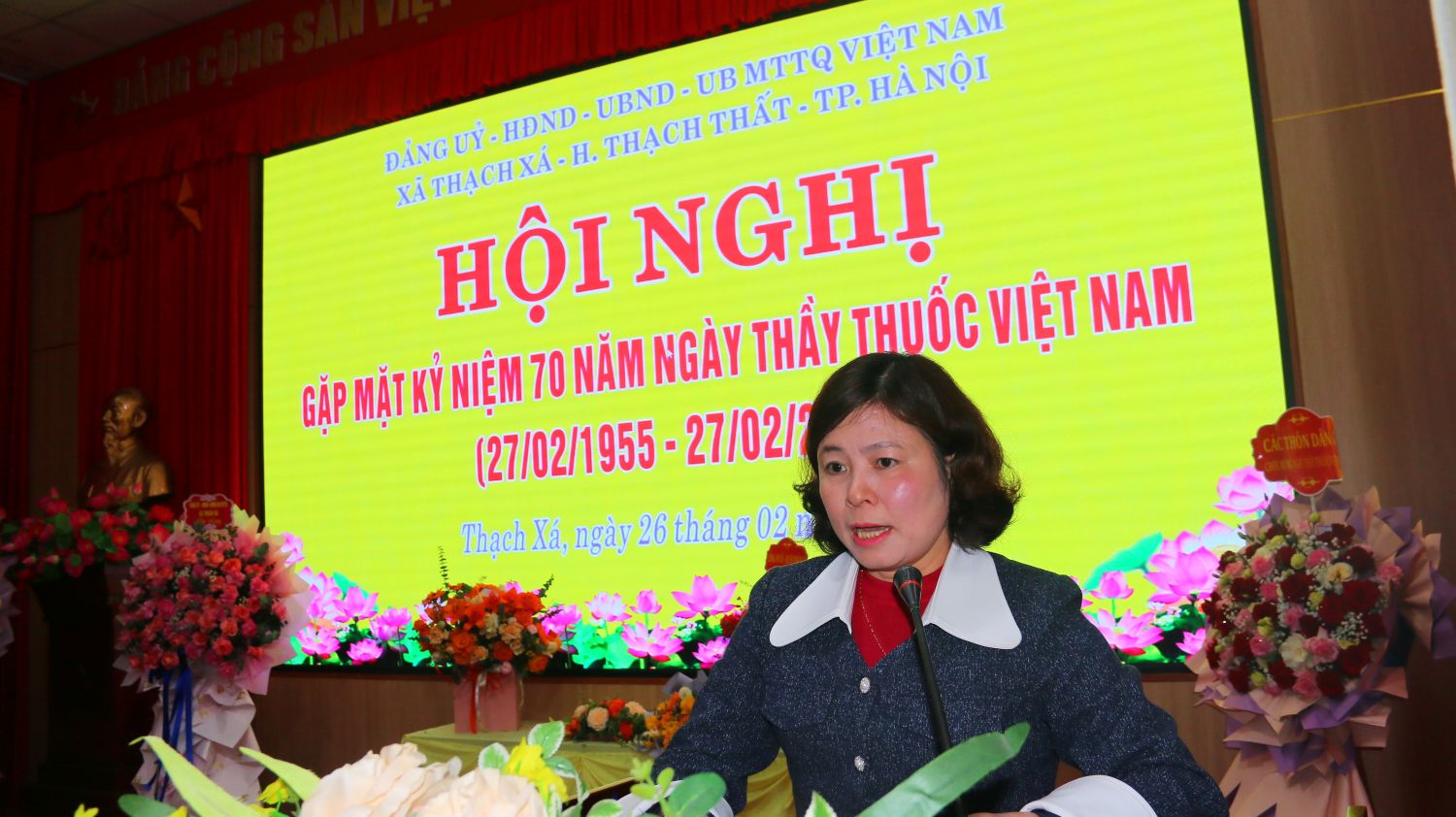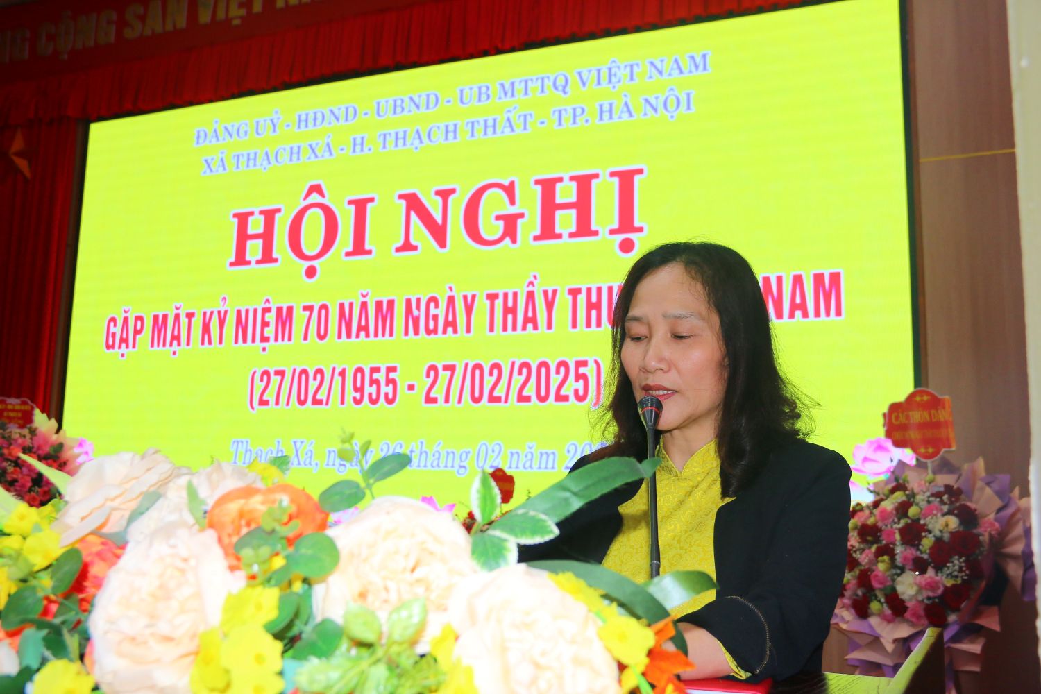 27/02/2025Sáng ngày 26/2, xã Thạch Xá tổ chức hội nghị kỷ niệm 70 năm ngày Thầy thuốc Việt Nam (27/2/1955 – 27/2/2025). Đồng chí Cấn Thị Nhung – Phó Giám đốc Trung tâm y tế huyện dự, tặng hoa chúc mừng.