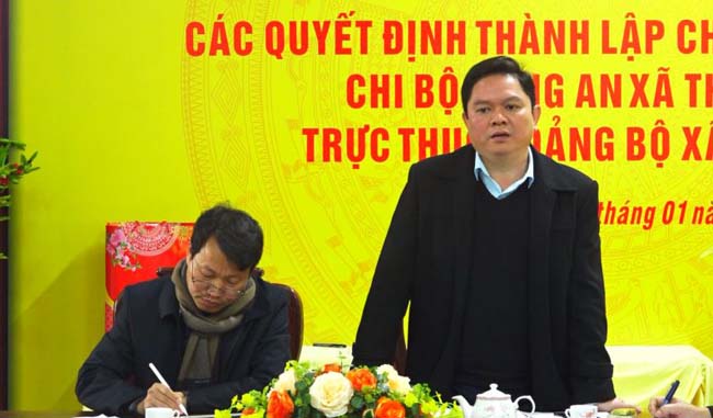 Đ/c Nguyễn Mạnh Quân - HUV, Bí thư Đảng ủy, Chủ tịch UBND xã Thạch Xá phát biểu tại buổi làm việc