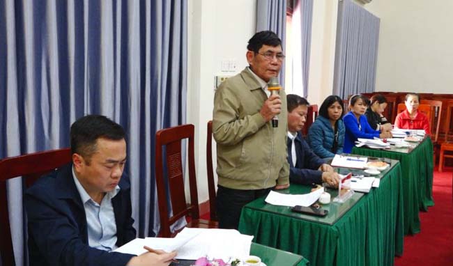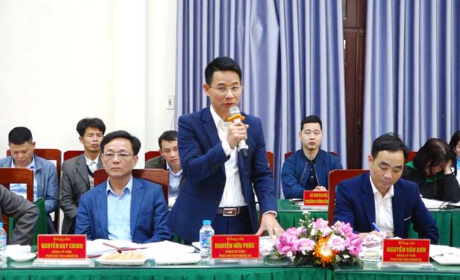 Đại diện các ngành, các xã, thôn phát biểu tại buổi làm việc