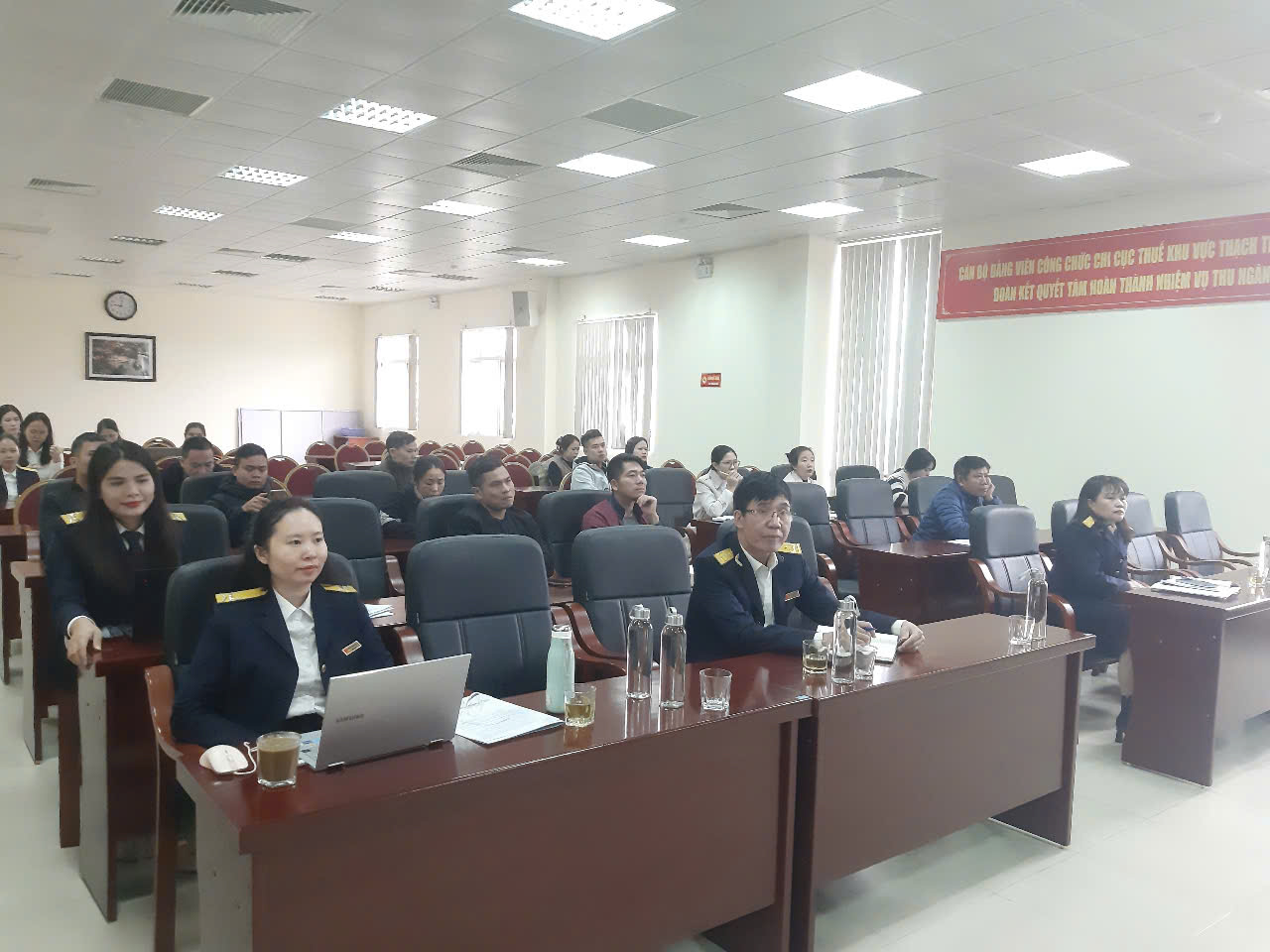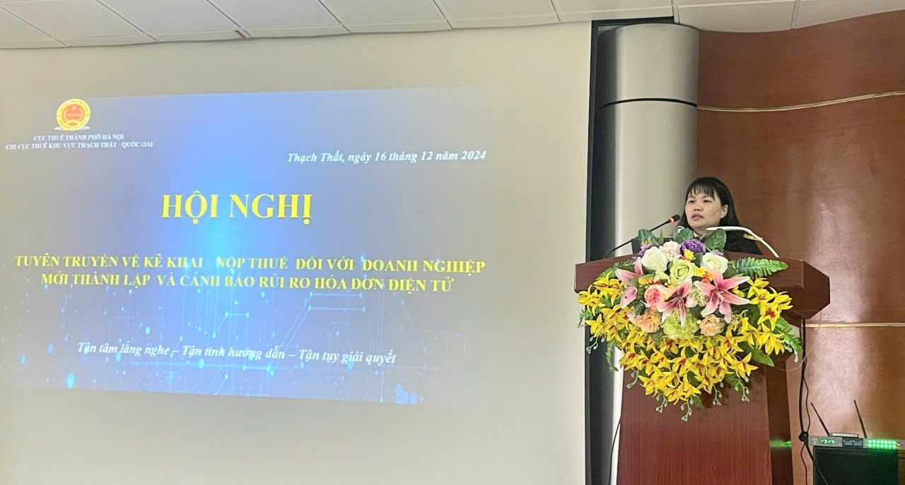 17/12/2024Sáng ngày 16/12, Chi cục Thuế khu vực Thạch Thất- Quốc Oai tổ chức Hội nghị tuyên truyền về kê khai, nộp thuế cho 39 doanh nghiệp mới thành lập tháng 11/2024 trên địa bàn huyện Thạch Thất, Quốc Oai.