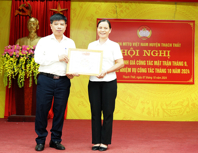 Chỉ đạo nhiệm vụ trọng tâm tháng 10, đồng chí Chủ tịch UB MTTQ Việt Nam huyện yêu cầu Ban Thường trực UB MTTQ các cấp trên địa bàn huyện tiếp tục thực hiện tốt công tác nắm bắt dư luận trong nhân dân; tuyên truyền, vận động nhân dân khắc phục hậu quả do cơn bão số 3 gây ra; tăng cường tuyên truyền các ngày kỷ niệm lớn của của đất nước, thủ đô và huyện. Tiếp tục triển khai cuộc vận động ủng hộ Quỹ vì người nghèo và ủng hộ người dân bị thiệt hại nặng nề do cơn bão số 3; phối hợp chuẩn bị tốt các điều kiện phục vụ hội nghị đối thoại cấp huyện năm 2024; đồng xây dựng kế hoạch triển khai các hoạt động kỷ niệm 94 năm ngày thành lập MTTQ Việt Nam (18/11) gắn với tổ chức Ngày hội đại đoàn kết ở địa phương; Bên cạnh đó tập trung rà soát lại các chỉ tiêu, nhiệm vụ theo kế hoạch, chương trình đã đề ra năm 2024.