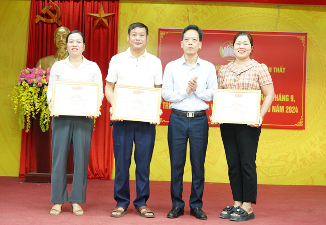 Tại hội nghị, UB MTTQ huyện đã trao 01 giải Nhất, 01 giải Nhì, 03 giải Ba và 5 giải Khuyến khích cho 10 tập thể đã có thành tích trong cuộc thi tìm hiểu Luật Thực hiện dân chủ ở cơ sở năm 2024. Trong đó, giải Nhất được trao cho đơn vị UB MTTQ xã Hương Ngải; giải Nhì thuộc về xã Đồng Trúc, 3 giải Ba được trao cho UB MTTQ các xã: Thạch Hoà, Canh Nậu và Kim Quan./.