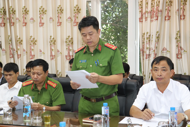 Cán bộ Công an xã Tân Xã báo cáo tại Hội nghị