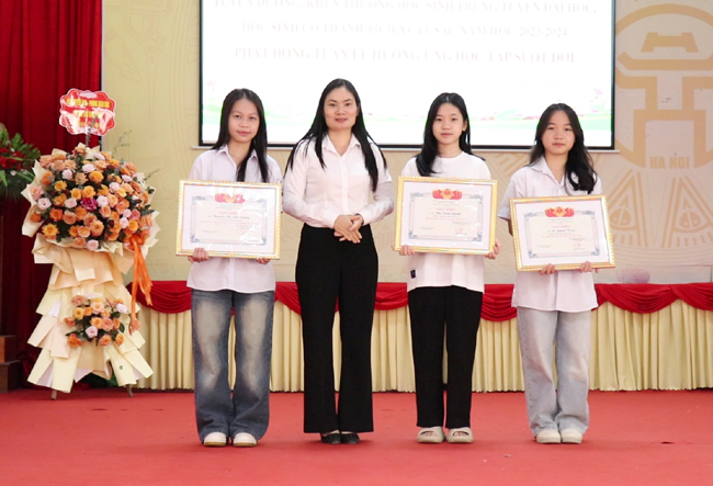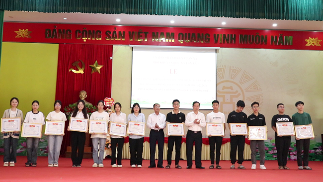 Tại buổi Lễ, UBND- Hội khuyến học xã đã trao giấy khen cho 48 em học sinh trúng tuyển vào các trường Đại học năm học 2024- 2025; học sinh giỏi tiêu biểu năm học 2023- 2024 và phát động Tuần lễ học tập suốt đời năm 2024 với chủ đề: “Xây dựng năng lực tự học trong kỷ nguyên số ".